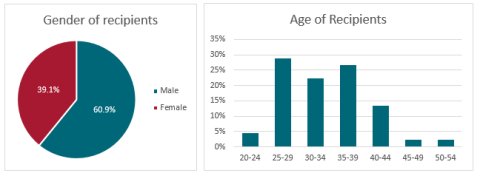The age of recipients ranged from 24 to 50 years old. The median and average age were both 33 years. The majority of applicants were between the ages of 25 and 39.