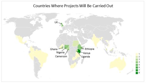 Recipients represented six continents and 20 countries. 67.4% of recipients were based in the African continent.